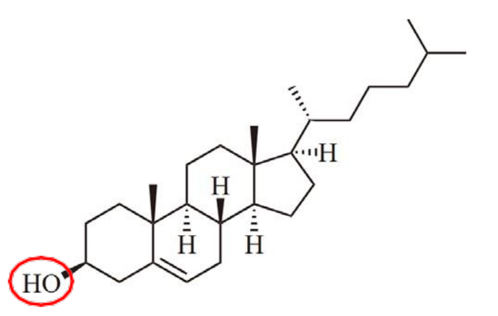 Le noyau hydrophobe est au milieu, entre l'xxx OH hydrophile et la queue xxx. Le cholesterol permet de rendre la membrane plus fluide.