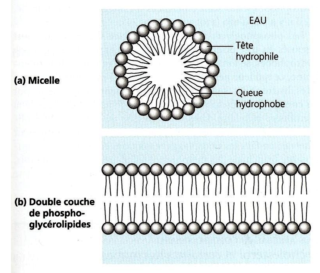 - Structure dans la membrane plasmique : association en bi-couches, barrières : membrane semi-perméable. Ils servent d'identificateurs.