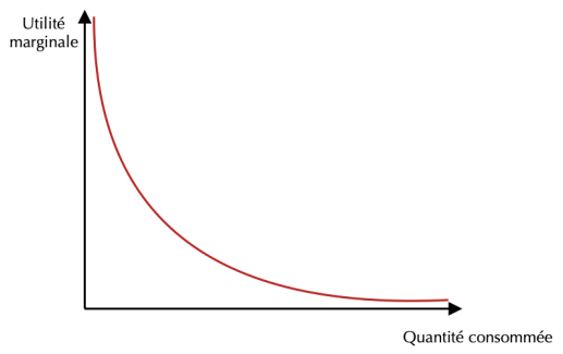 Gossen propose deux lois mathématiques qui lient le plaisir utile à l'achat : plus un produit est acheté, moins son utilité "ajouté" sera grande. Sa limite tend donc vers 0 (loi de prolongation, 1) et que les utilités selon quantité se valent (loi de répétition, 2)