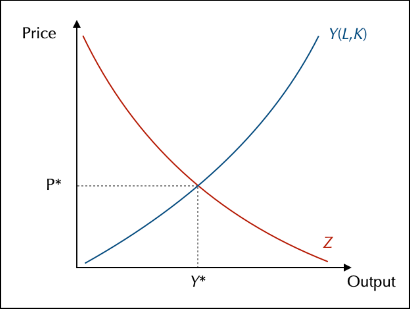 Y is the global aggregated supply on long run, and Z is the global aggregated O (on long run)