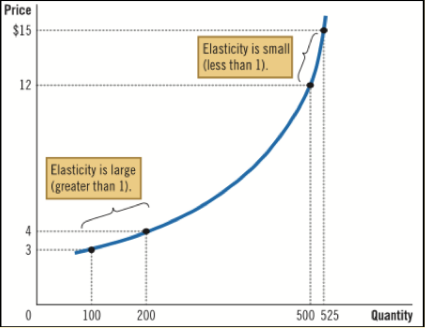 When the proportion of quantity moves more over price, the elasticity is > 1. If's it a perfect 1, then it's a perfect (unit) elasticity. The flatter the curve is at a given point, the greater the elasticity will be. The steeper the curve is, the less elastic the demand/supply will be.